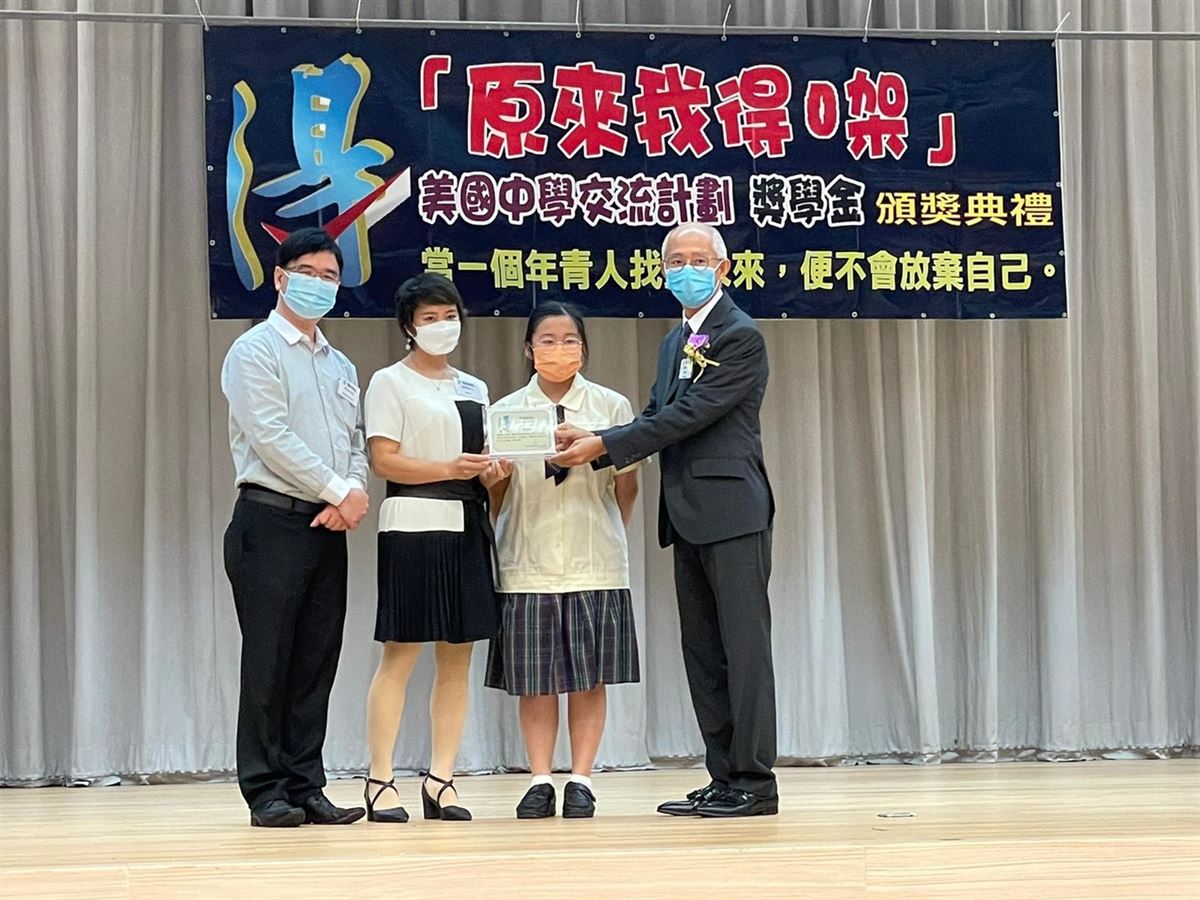 這計劃由「我都得」教育基金主辦,得獎學生獲提供一年的「美國中學交流計劃」費用及生活津貼,全額獎學金共HKD 131,000。獎學金頒獎禮於2021年7月24日舉行,家長、校長及老師到場支持,互相分享勉勵,十分感人。
