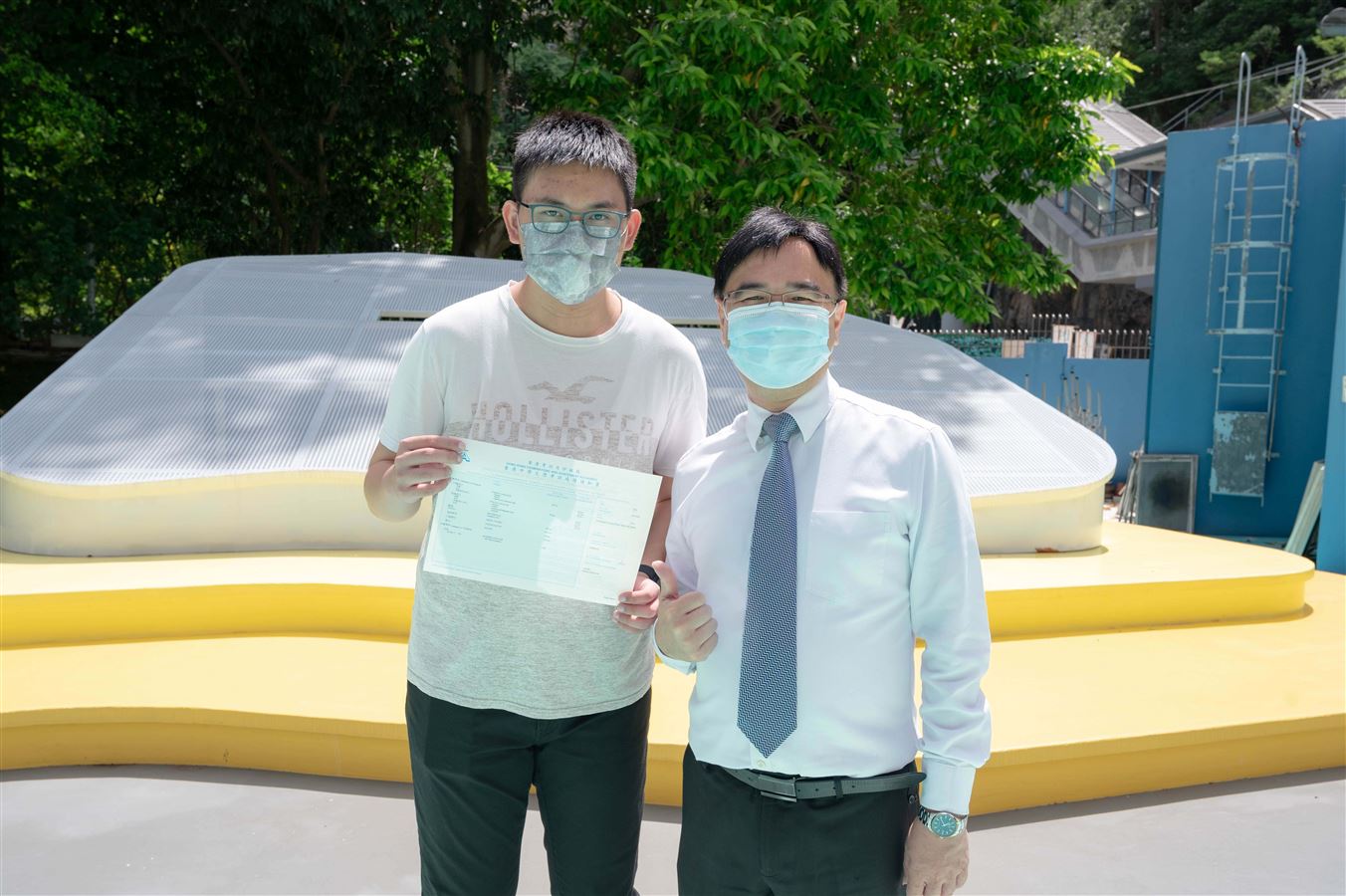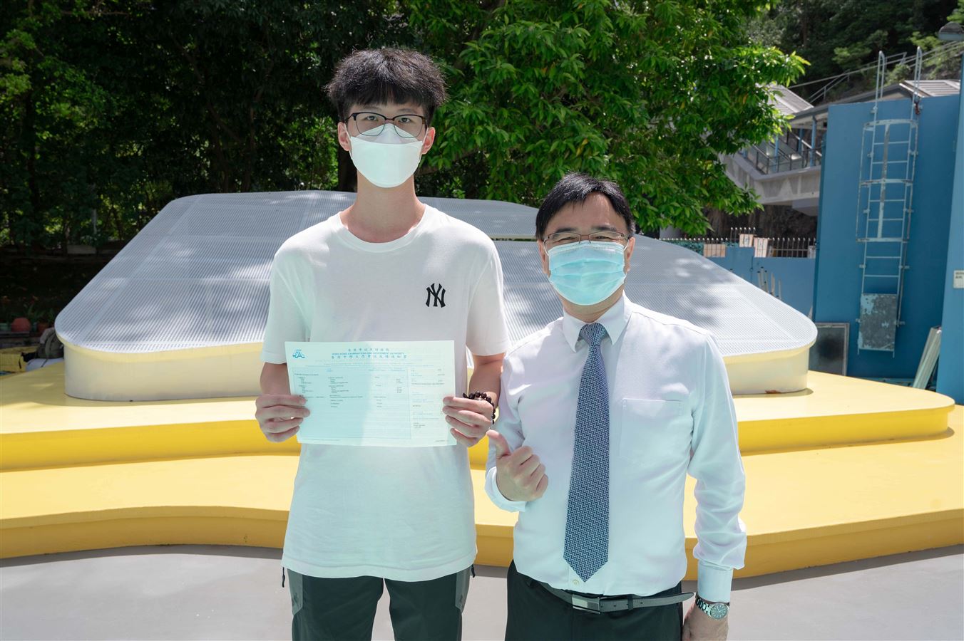 本年度有成績優異的學生,縱然佩戴口罩,喜悅之情湧溢,我們也把握機會邀請部份成績優異的學生拍照留念,其中有兩位各科總積點超過30分: