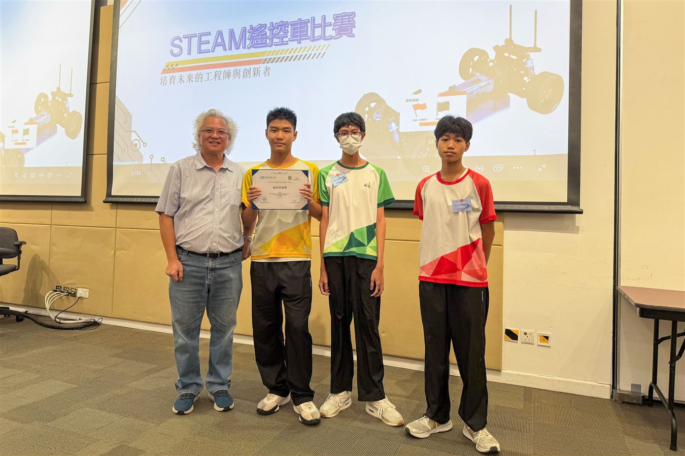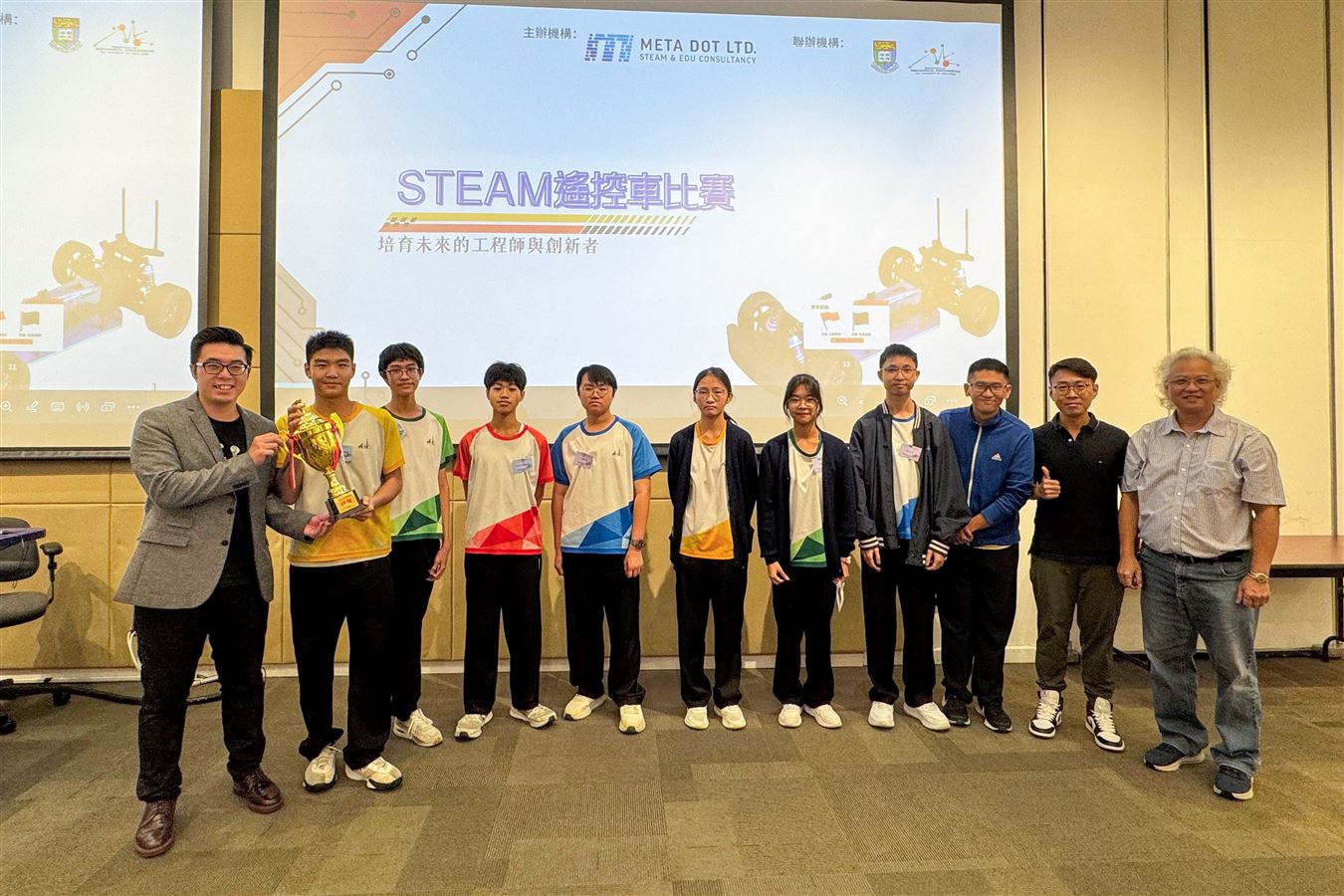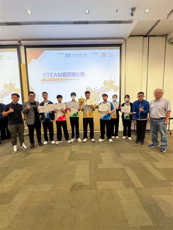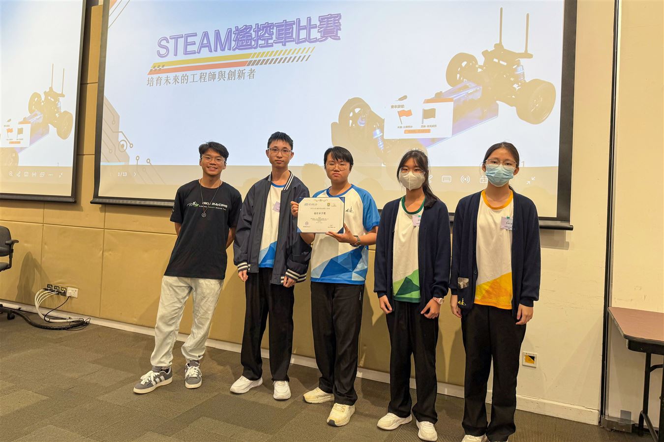 本校2A麥嘉敏、2A游鎧全、2B屈俊龍、2B黃曉誼、3C馬俊康、3D葉昊睿及3C顧梓燊參與由香港大學機械工程學系與 Meta Dot Ltd. 合辦的全港STEAM遙控車比賽暨工作坊。同學經過刻苦訓練與專注研習,於比賽中勇奪全場總冠軍。他們在30分鐘內完成248個賽圈,遠拋第二名的181個賽圈;並以每圈最快3秒的成績,囊括「最快單圈獎」及「最佳車手獎」。