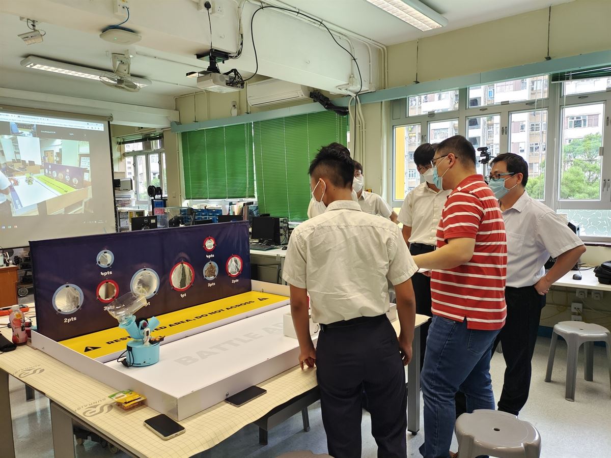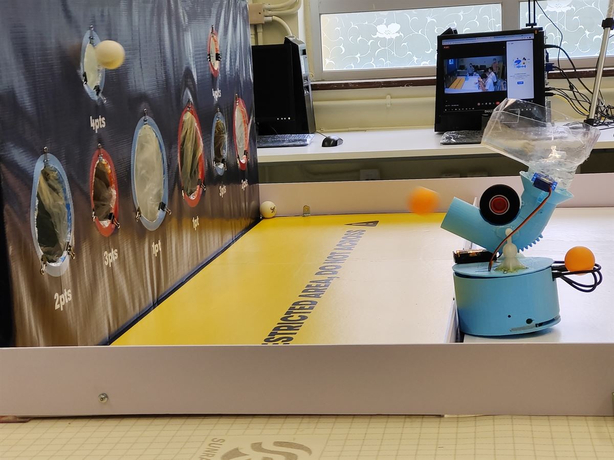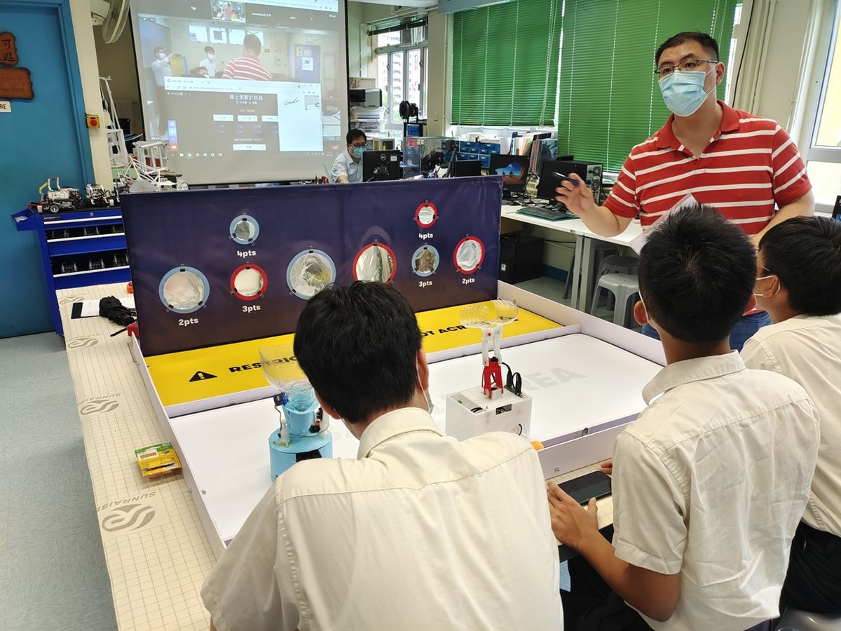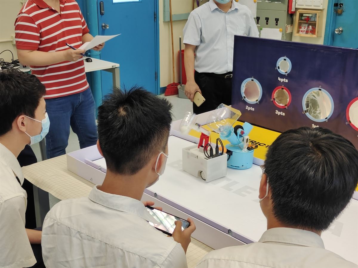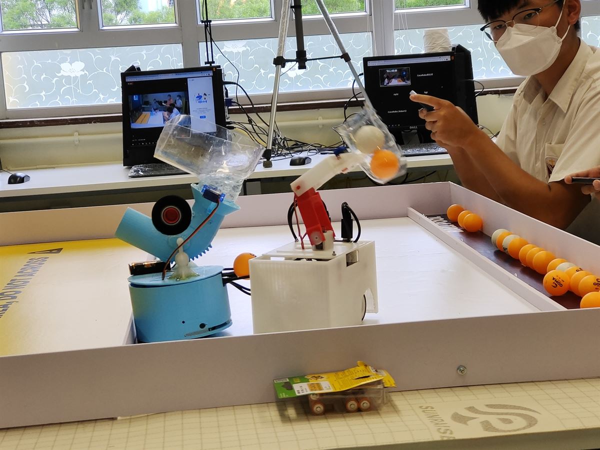 比賽要求同學自行設計裝置,以3D打印技術自製組件,自行編寫程式,然後以手機控制兩組機械人取球及射球比賽。
